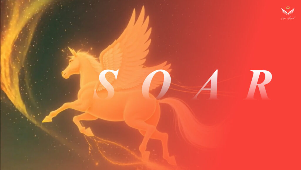 The flying horse crosses through layers of clouds